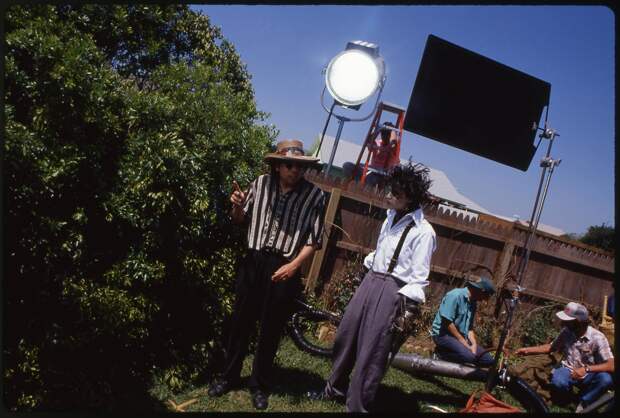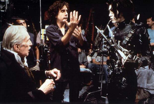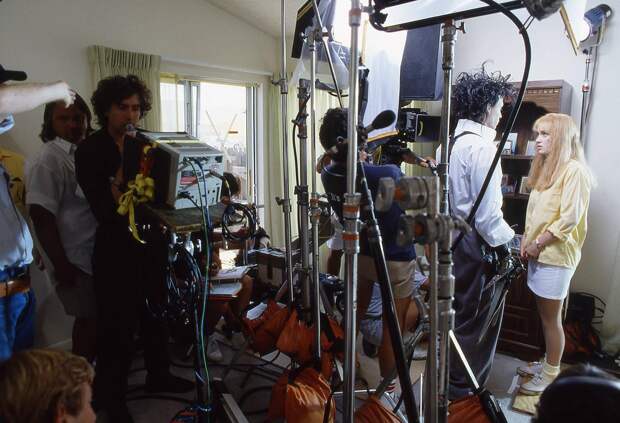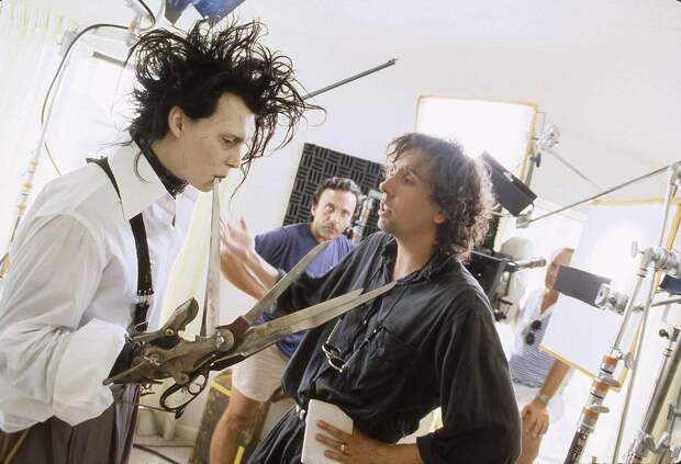 На съемках кинокартины Edward Scissorhands (Джонни Депп и Тим Бёртон), 1990