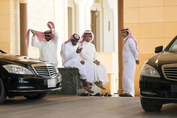 Саудовцы, водители лимузинов S-класса, в кулуарах политических переговоров в Эр-Рияде, Саудовская Аравия