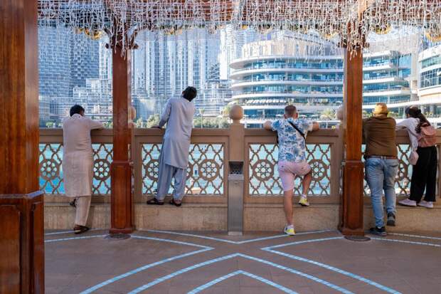 Туристы смотрят на Бурдж-Аль-Халифу. Объединенные Арабские Эмираты, Дубай, 2023