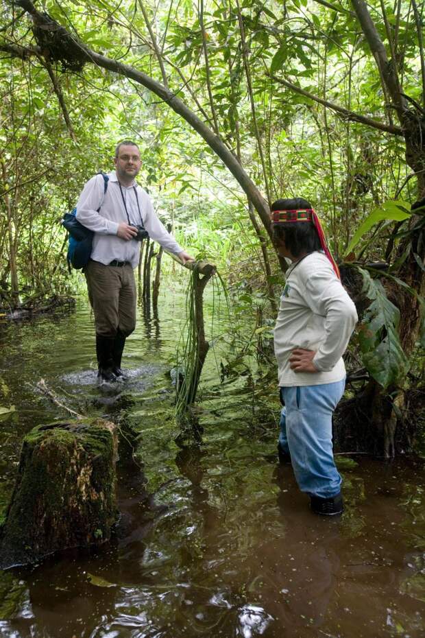 Туристы путешествуют по тропическому лесу с гидом на юго-востоке Эквадора