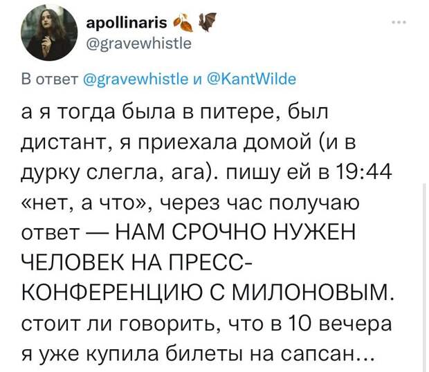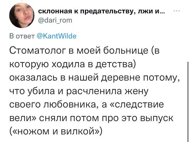 Твиттерчанка @KantWilde попросила подписчиков поделиться самыми дикими и безумными курьёзами, которые случались в их жизни. Главное условие — рассказ должен быть таким, чтобы его правдивость вызывала сомнение. И, собственно, сама подала пример.