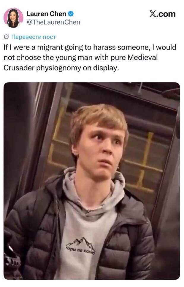 Мужчина молча вышел на следующей остановке, в полицию никто обращаться не ста. Ситуация, возможно, и закончилась бы на уровне обсуждений в местных телеграм-каналах, если бы ролик внезапно не залетел в соцсети X, набрав уже более 14 миллионов просмотров. Волну обсуждений и мемасиков запустила блогер Лорен Чен.