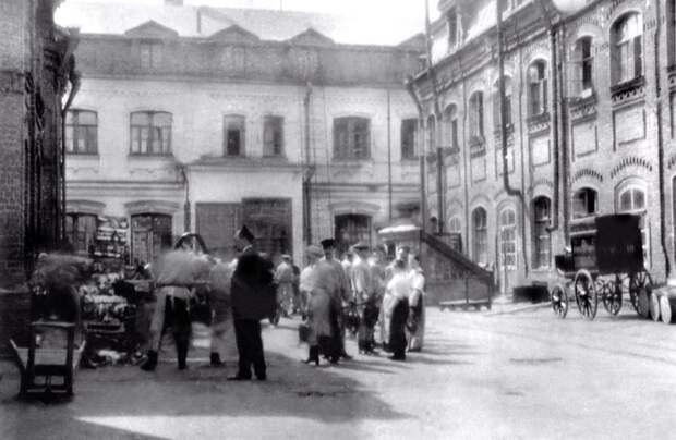 Двор колбасной фабрики в Кадашах. Фабричный корпус — справа