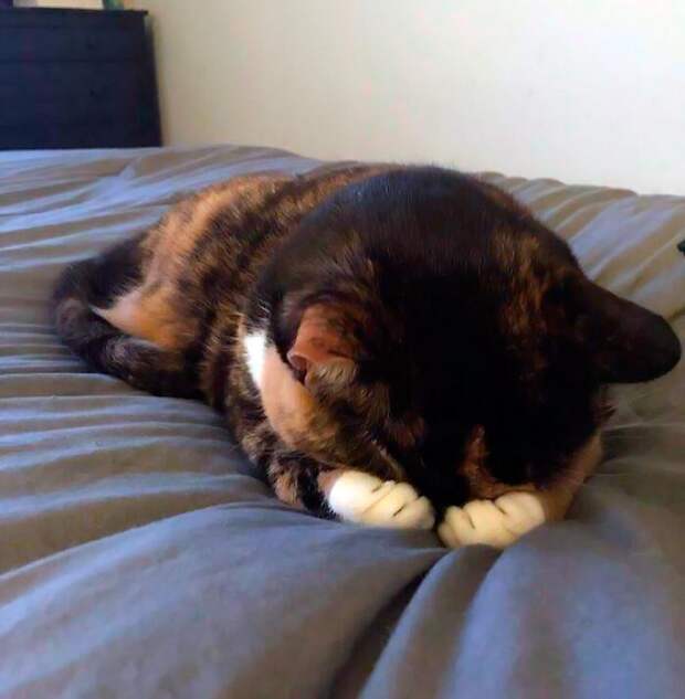Скорее всего, в организме котов и кошек такое количество мышц, моторчиков и шарниров, что они могут принять любую форму. Да еще скорчат при этом неподражаемое выражение «лица».