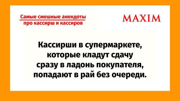 Кассирши в супермаркете, которые кладут сдачу сразу в ладонь покупателя, попадают в рай без очереди.