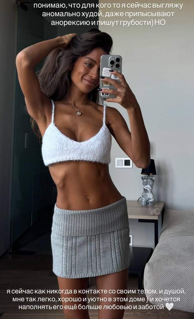 В соцсетях об экстремальной худобе экс-жены футболиста Павла Мамаева Аланы Мамаевой уже слагают легенды… как и об ее бесконечных ногах. Это тот случай, когда подписчики уже перестали переживать за здоровье знаменитости и просто смирились. Сама Алана рассказывала, что к такому телу пришла после беременности. По словам модели, во время беременности она набрала 40 килограммов, тогда ее вес перевалил за отметку 90, но она взяла себя в руки и похудела. Мамаева комментировала слухи о проблемах со здоровьем, утверждая, что с ней все в порядке, и ей просто стоит подкачаться, чтобы люди перестали считать ее нездорово-худой: «Если мне добавить физическую нагрузку, я стану более рельефной, я не буду выглядеть дохлой. Все будут говорить, что я нормальная и здоровая. А пока я дохлая, все думают, что со мной что-то не так».