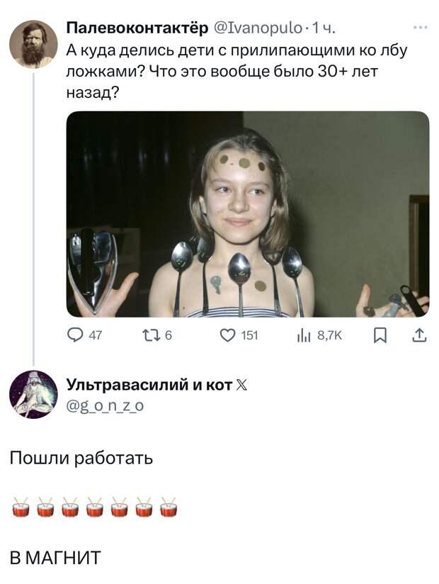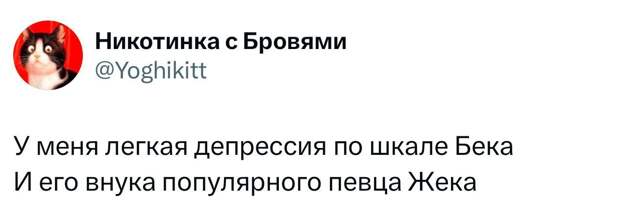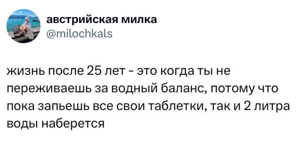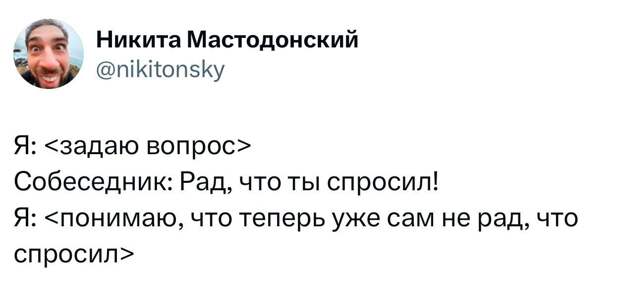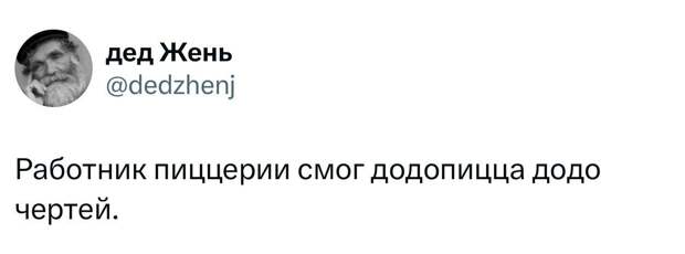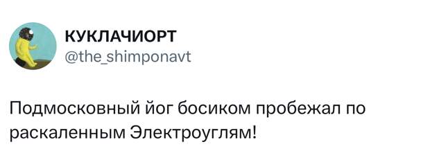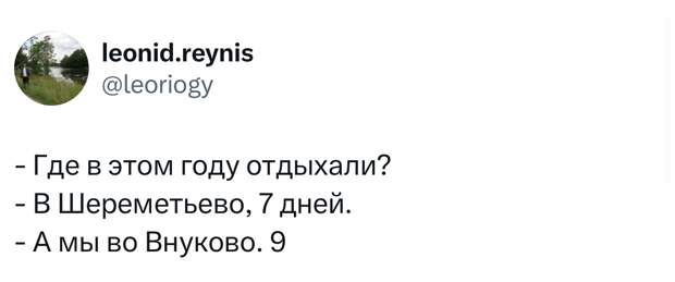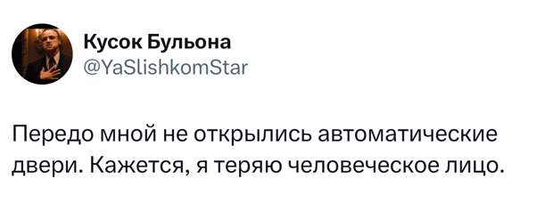 Сеть X, ранее известная как «Твиттер», подхватила вахту и, как оркестр тонущего «Титаника», продолжает ее нести, а русский его сегмент, схватившись за голову и опасливо оглядываясь, обсуждает ситуацию в мире.Санкции крепчают, будущее туманно, так что каждая подборка сейчас на вес кока-колы или даже капсульных кроссовок. Дарим ее вам в память о нашей дружбе! И обязательно почитайте подборку Самые смешные шутки июня и «лучшая чебурекомендация» и сообщите нам: «Ну вот, можете же, когда захотите!» А то сами мы не знаем.