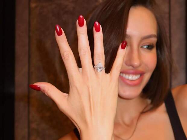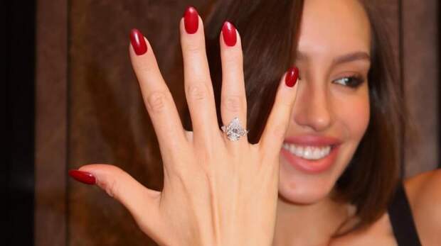 На видео избранница рэпера выглядела радостно и взволнованно, она написала: «Ох, и балует меня! Мечтала о таком колечке».