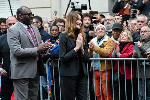 Карла Бруни благодарит людей, пришедших проводить в тюрьму Николя Саркози, 21 октября 2025 года