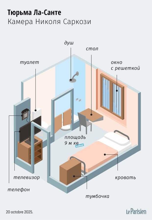 Николя Саркози начнет отбывать свой срок лишения свободы с 21 октября 2025 года. Французское издание рассказало об условиях заключения политика.