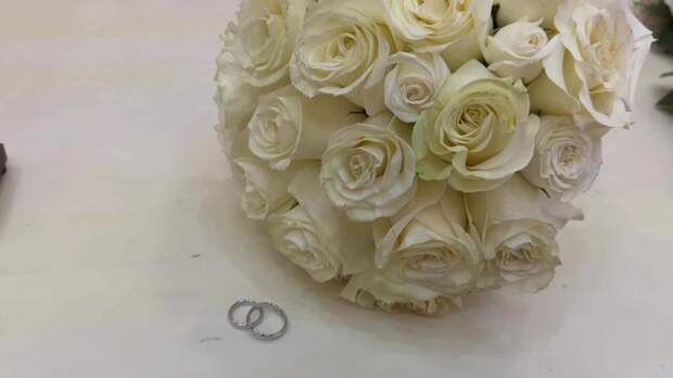 Пара была одета в темно-зеленые камуфляжные пиджаки, а в руках у невесты — символический букет белых роз. Помимо небольшого количества близких, которые присутствовали на свадьбе, торжество также посетил глава ДНР Денис Пушилин и подарил паре пышный букет роз.