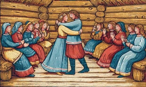 Особенно показателен троицкий цикл. В книге описан обычай, при котором после общих гуляний и угощений парень открыто выбирал девушку и она могла уйти к нему ночевать. Это не тайная связь и не скандал, а легитимный сценарий, разрешенный календарем. Решение принималось быстро, при свидетелях и сразу переводило отношения в новую фазу.