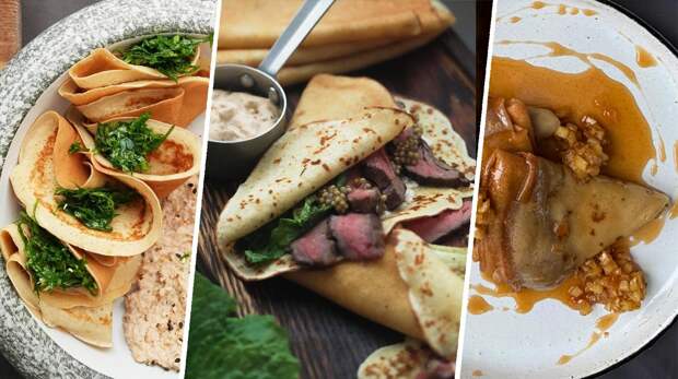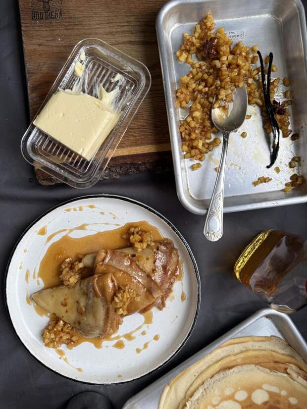 Пшеничный блин с печеным яблоком и яблочным соусом на основе виски