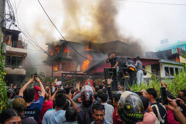 , фото: ZUMA Press, Inc.Как пишут местные СМИ, протестующие ворвались в здание парламента, суда, в резиденции первых лиц Непала — президента Рама Чандры Паудела, премьер-министра Шармы Оли, ряда политиков, офис партии «Непальский конгресс». Здания не просто громили, но и поджигали. Судя по последним новостям, даже вместе с людьми. Так, протестующие подожгли резиденцию бывшего премьера Непала Джаланатха. В этот момент в доме была его жена. Женщину удалось вытащить из запертого горящего здания, но она скончалась в больнице.