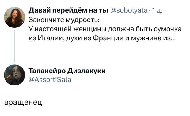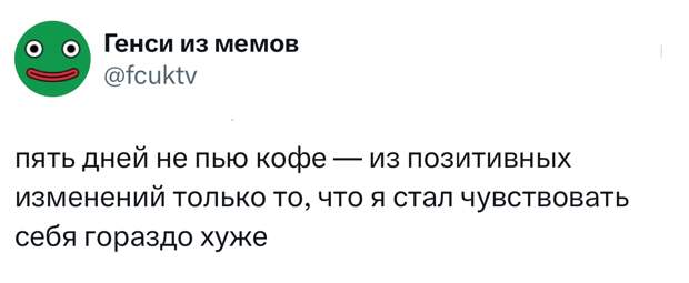 В России заблокирован «Твиттер» (теперь Х), но наш специальный корреспондент из-за рубежа присылает нам самые смешные твиты дня. А мы раз в неделю отбираем из них лучшие, бережно сохраняя авторские орфографию и пунктуацию.