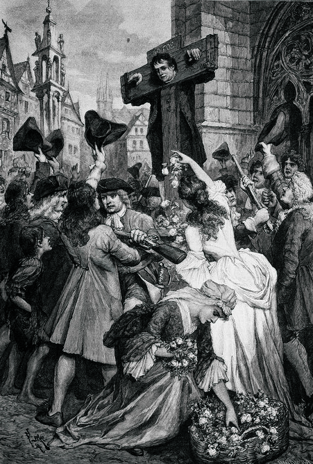 В 1703 году Дефо был арестован и обвинен в клевете, за которую его приговорили к стоянию у позорного столба. (Как говорила Анна Ахматова: «Какую биографию делают нашему рыжему!») Жестокие преследования со стороны властей — как раз то, чего не хватало новорожденному журналисту для достижения полной любви со стороны публики.