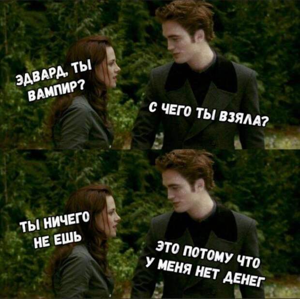 Особенно пытался не хохотать Роберт Паттинсон, так как большинство кринжовых фраз из этого списка принадлежат его герою Эдварду.«И давно тебе семнадцать? — Уже да…»