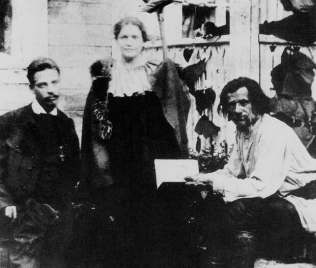 Лу Андреас-Саломе и поэт Райнер Мария Рильке (слева) в гостях в России у поэта Спиридона Дрожжина, 1899 г.