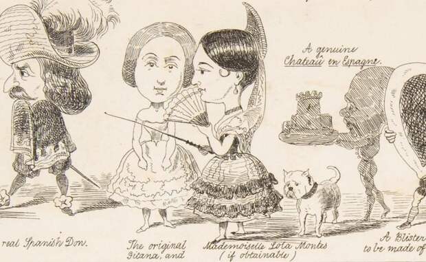 Лола Мендес изображена на фрагменте рисунка «Вероятные результаты промышленности всех наций в 51-м году», 1850 г.
