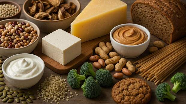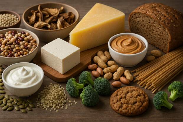 Чечевица, фасоль, нут и горох содержат в среднем 20–25 г белка на 100 г сухого продукта. Это растительный белок с высоким содержанием лизина — аминокислоты, которой часто не хватает в злаках. Кроме того, бобовые богаты железом, калием, магнием и клетчаткой, что делает их отличной основой здорового питания.Рекомендуется есть бобовые 2–3 раза в неделю, меняя их виды. Они хорошо насыщают, поддерживают уровень сахара в крови и подходят для диетического питания. Чтобы избежать дискомфорта, лучше замачивать бобы перед готовкой и сочетать их со специями, улучшающими пищеварение (например, тмин или кориандр).