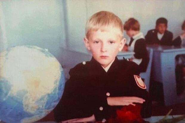 Натуральный блондин еще в школе поражал всех своей шевелюрой. Только вот из-за работы отца ему пришлось сменить несколько учебных заведений: сначала он пошел в школу в Германии, затем в Балашихе, а с 3-го класса учился в Новосибирске. Аттестат ему выдали уже в московском учреждении № 1113 с музыкальным и хореографическим профилем.