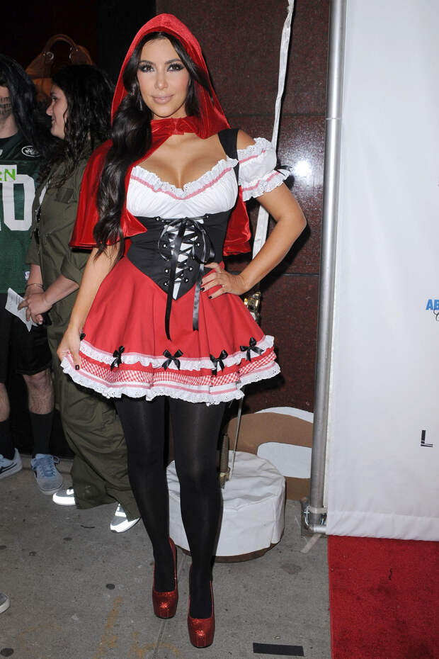 Хэллоуин — кажется, один из любимых праздников Ким Кардашьян, потому что каждый год во время праздника звезда придумывает эпатажные и запоминающиеся костюмы. В далеком 2010-м Ким предстала в наряде, который мы бы назвали «Красная Шапочка не для всех». Образ состоял из мини-платья с корсетом и глубоким декольте.
